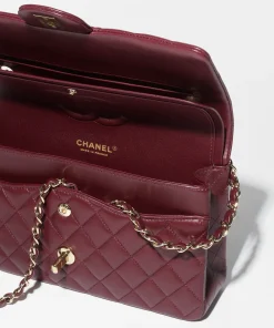 The Chanel CLASSIC 11.12 HANDBAG in burgundy is the epitome of timeless elegance and sophistication. Crafted from high-quality leather and adorned with a luxurious gold chain, this iconic accessory exudes luxury and style. The spacious interior of the bag allows for ample storage, making it perfect for everyday use or special occasions. Elevate your wardrobe with this exquisite piece from Chanel, a must-have for any fashion enthusiast.