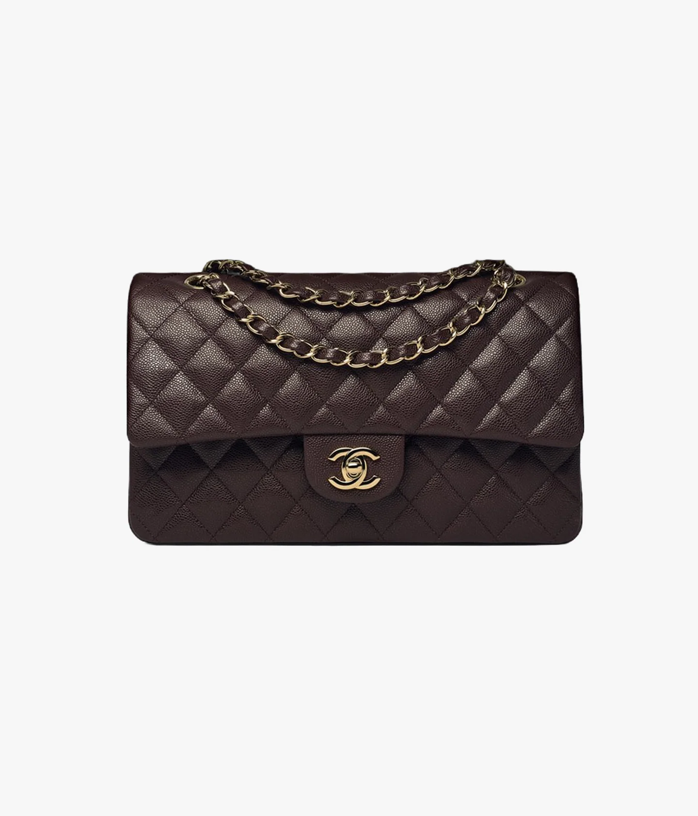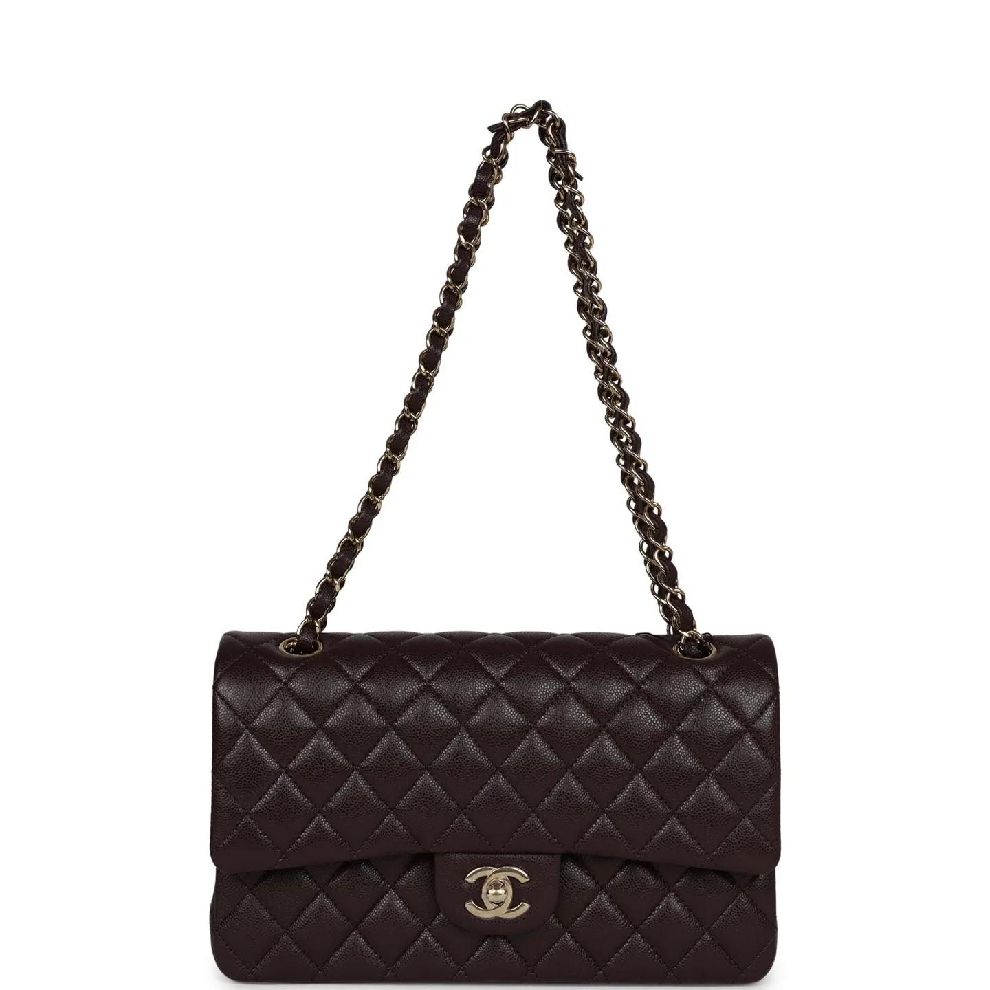 The Chanel CLASSIC 11.12 HANDBAG in Dark Maroon is the epitome of timeless elegance and sophistication. Crafted from high-quality leather and adorned with a luxurious gold chain, this iconic accessory exudes luxury and style. The spacious interior of the bag allows for ample storage, making it perfect for everyday use or special occasions. Elevate your wardrobe with this exquisite piece from Chanel, a must-have for any fashion enthusiast.