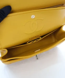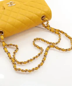 The Chanel CLASSIC 11.12 HANDBAG in Yellow is the epitome of timeless elegance and sophistication. Crafted from high-quality leather and adorned with a luxurious gold chain, this iconic accessory exudes luxury and style. The spacious interior of the bag allows for ample storage, making it perfect for everyday use or special occasions. Elevate your wardrobe with this exquisite piece from Chanel, a must-have for any fashion enthusiast.