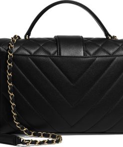 Handles: Single flat top handle and a and chain entwined shoulder strap