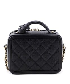 Chanel Filigree Vanity Case Gold-tone Small Black