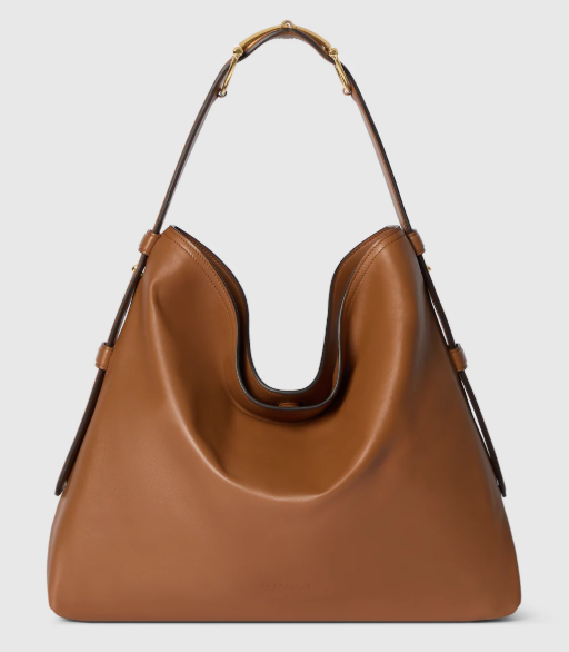 The Gucci Beatrix handbag from the Fall Winter 2025 collection has a comfortable form that is enhanced by the iconic Horsebit decoration on the shoulder strap. It is made of supple, silky leather. Its elegant appearance is enhanced by the gold-toned hardware, and a zip compartment inside keeps necessities safe.