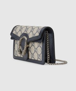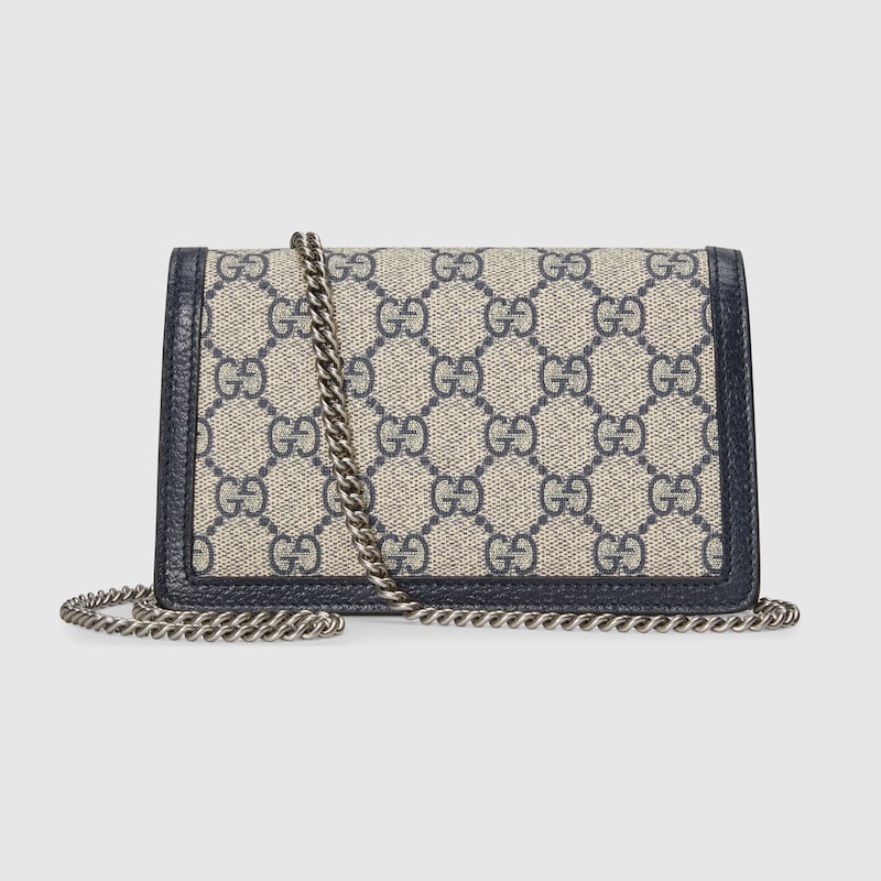 For Gucci Love Parade, GG Supreme is debuted in a classic blue and beige colour scheme, echoing the material’s historical beginnings. Decade after decade, the canvas has become as a defining feature of the House, appearing at the forefront of every collection. This Dionysus tiny bag is characterised by its classic colour scheme.