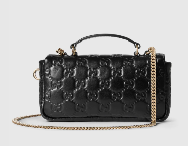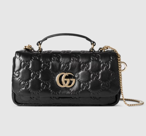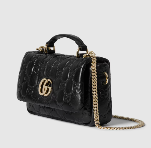 In honour of the city that served as the inspiration for the design, the GG Milano top handle bag made its premiere at the Fall Winter 2024 fashion presentation during Milan Fashion Week. The puffy GG embossed leather feels smooth and soft to the touch, and it boasts new Double G hardware. The bag may be worn on the shoulder or crossbody thanks to the chain strap.