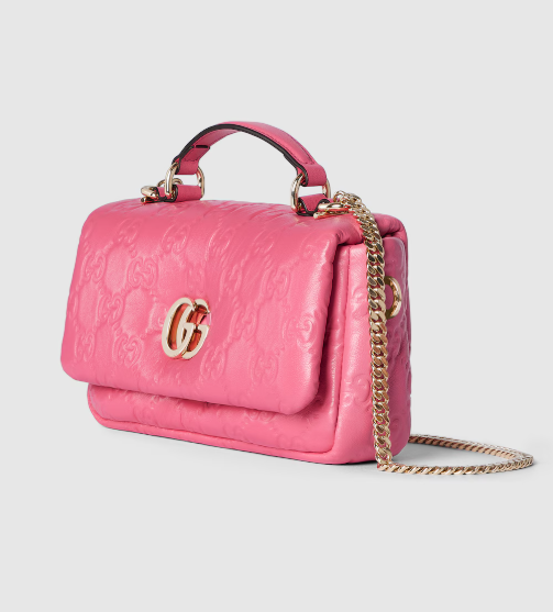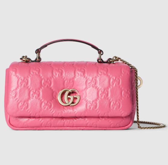 In honour of the city that served as the inspiration for the design, the GG Milano top handle bag made its premiere at the Fall Winter 2024 fashion presentation during Milan Fashion Week. The puffy GG embossed leather feels smooth and soft to the touch, and it boasts new Double G hardware. The bag may be worn on the shoulder or crossbody thanks to the chain strap.