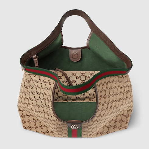 Gucci Giglio, which was unveiled at the Cruise 2026 fashion show in Florence, pays homage to the House’s Italian heritage as well as the spirit of continuity and reinvention. This roomy bag, which is made of GG canvas and has a separate pouch, has Web trim.