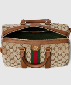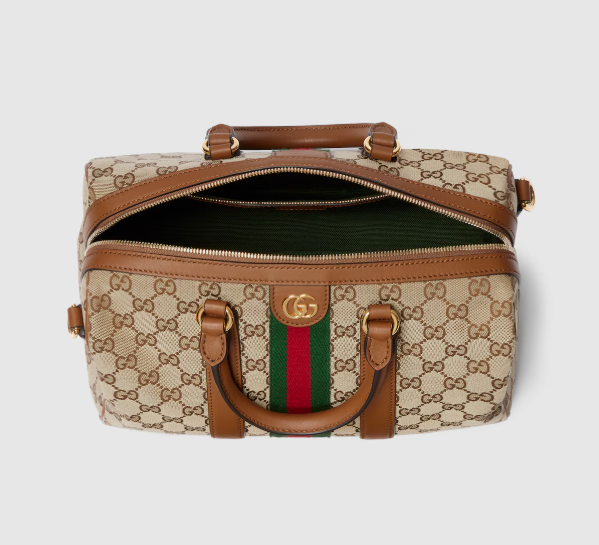 The Ophidia collection’s distinctive Web stripe and Double G logo, which are shown here in a gold-toned finish, commemorate the House’s history. This design is made from GG canvas in a seasonal hue.
