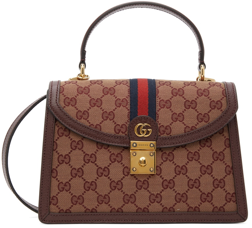 Gucci GG Supreme Padlock Shoulder Bag Brown