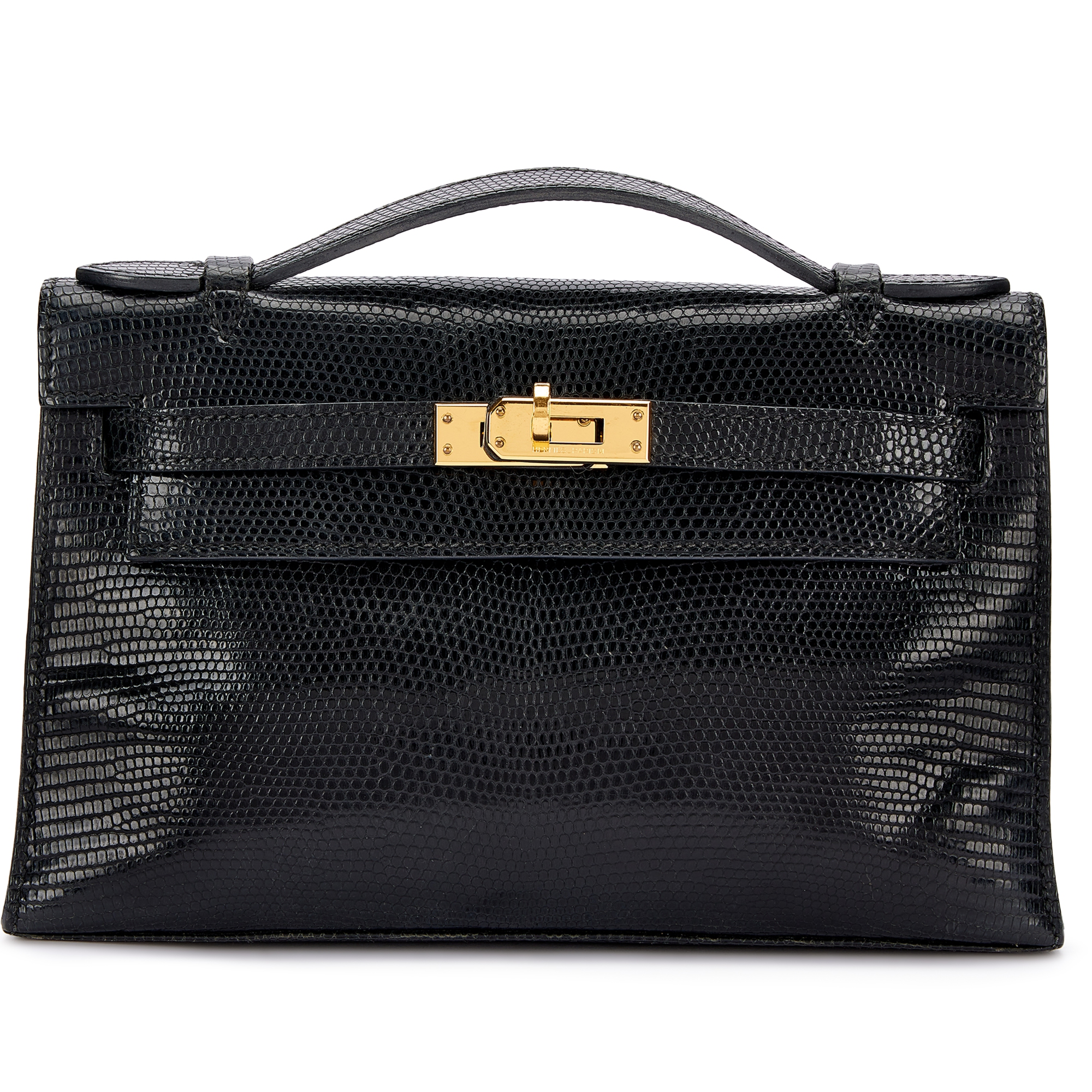 Hermès Black Niloticus Lizard Kelly Pochette Gold