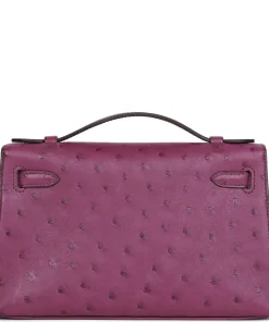 Hermès Kelly Pochette Anemone Ostrich Permabrass