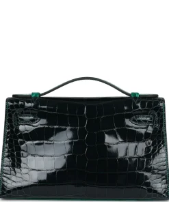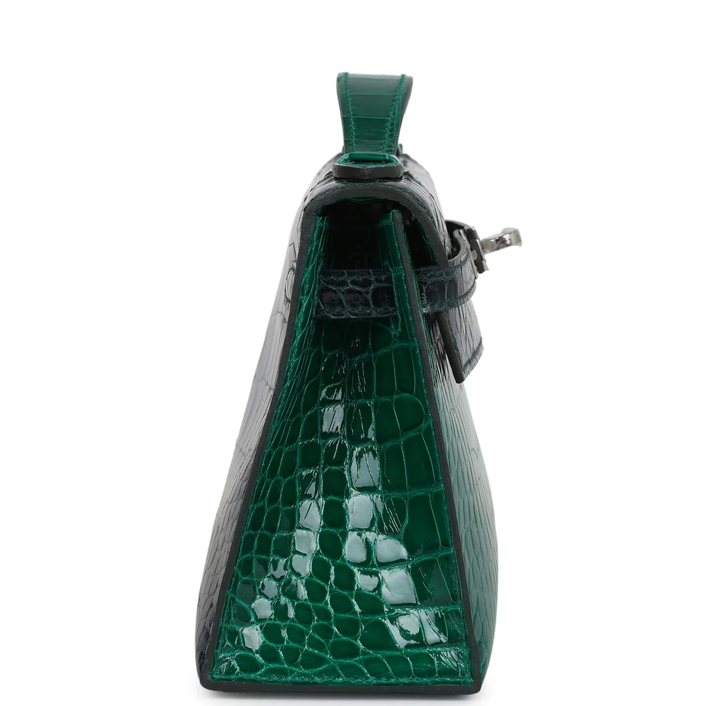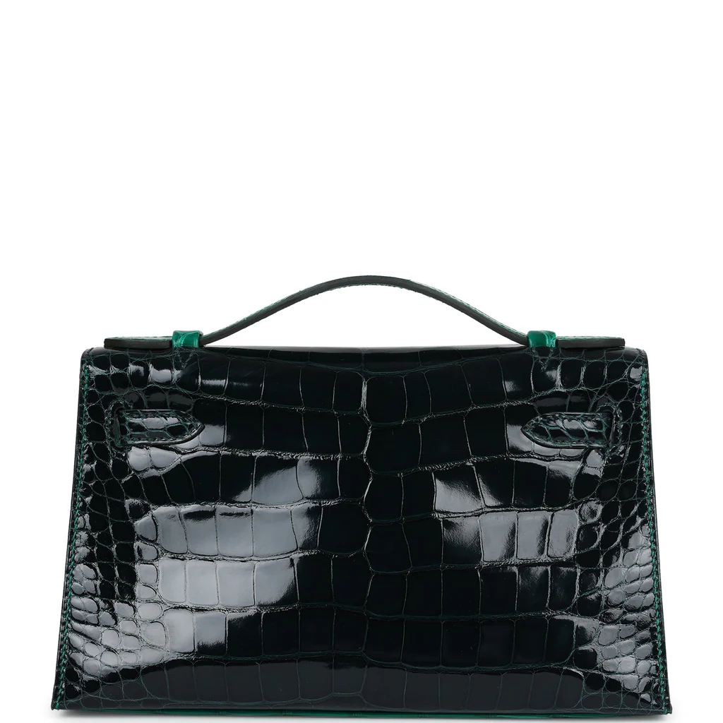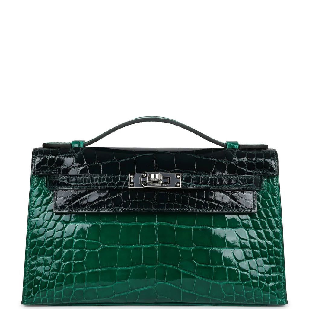 Hermès Kelly Pochette Emerald and Vert Rousseau Shiny Alligator Palladium