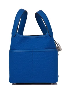 Hermès Picotin Cargo 18 Bleu France Swift and Toile Canvas Palladium Hardware