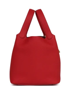 Hermès Picotin Lock 22 Vermillion Clemence Gold Hardware