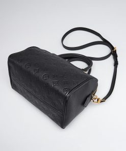 The LV Black Monogram Empreinte Speedy Bandouliere 25 is a great creation of LV that is elegant and functional at that same time, for those who appreciate style as well as practicality. This chic purse is crafted in black Monogram Empreinte leather that is shiny, supple, and chic that will stand the test of time. It has superb Louis Vuitton striped textile lining that gives your accessories optimum security.