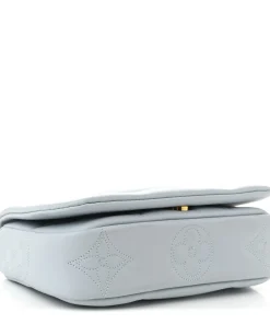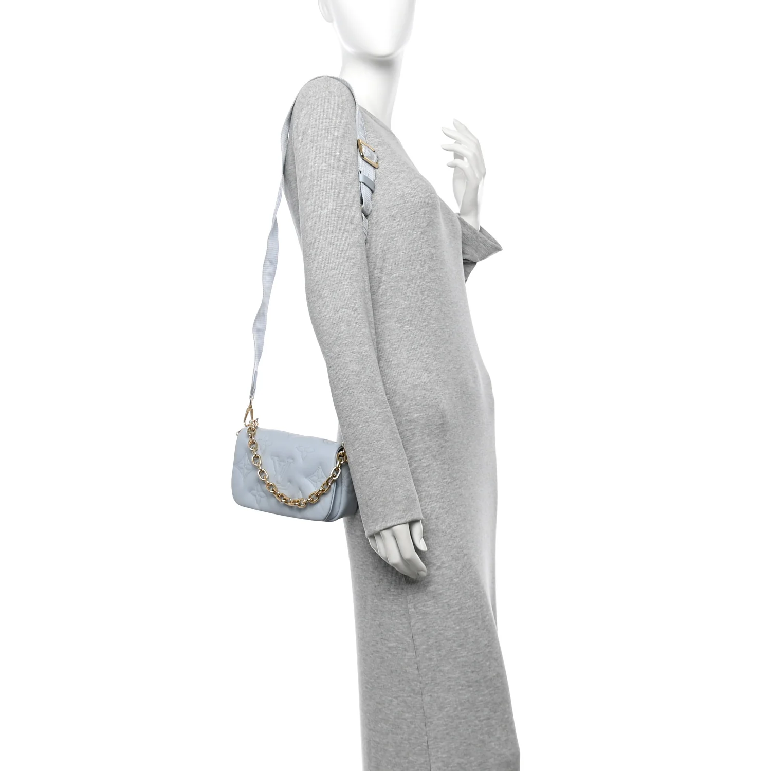 LOUIS VUITTON Calfskin Bubblegram Wallet On Strap Ice Blue