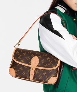 The Louis Vuitton Diane Satchel Monogram Canvas Handbag combines the nostalgic appeal and the practicality of wearing and carrying it now to create a classic accompaniment that is as fashionable as it is effective. It is a contemporary version of a classic 90s satchel. The Diane Satchel is made of a Monogram-coated canvas that enables it to have the famous Louis Vuitton sign with a modern design. The buckle and the detail Corner uses are archival-inspired and add the vibe of the golden days to the style.This Louis Vuitton handbag is not only a fashion item but also a useful and fashionable accessory to your everyday escapades.