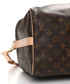 The LV Keepall Bandouliere holds the title of second-largest bag among the bags produced by Louis Vuitton. The bag is bigger than the Speedy and contains two handles. You can carry it by hand or on your shoulders. The bag is very adaptable and can be carried as a briefcase, shoulder bag, or handbag. This Keepall contains a modifiable long strap and a front flap fastened by a gold LV buckle. The LV Keepall Bandouliere has a considerable space; inside, there are pockets for organizing your commodities. The outside of the bag is made from monogram Canvas. The large gold padlock and key add to the luxury of this handbag. The handles are long and have a leather trim with gold metal rings. The bottom of the bag has four metal studs for protection.