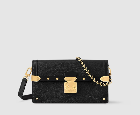 Inspired by the iconic trunks of Louis Vuitton, the Trunk chain wallet is a chic, day-to-evening design made of soft calf leather. While the flap is fastened with a recognisable S-lock, metal accents evoke trunk studs and corners. This particular type can be used as a clutch by removing its braided chain and adjustable shoulder strap.