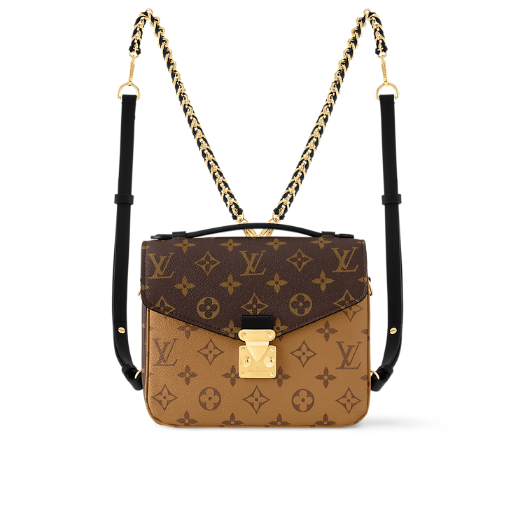 For the upcoming season, the stylish Pochette Métis has been redesigned with a new backpack silhouette. This preppy, coated-canvas design, which has the House’s iconic Monogram and directional Monogram Reverse symbol, is versatile and comes with a variety of carry choices. The glossy finish provided by the shining S-lock fastening goes well with the detachable braided chain.