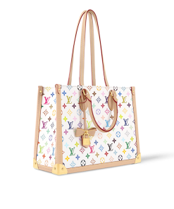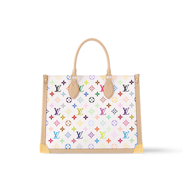 With its multicoloured Monogram canvas and signature natural cowhide leather trim, this limited-edition version of the renowned OnTheGo MM handbag makes a bold statement in the Louis Vuitton x Murakami collection. A keybell from LV x TM provides a final characteristic flourish from the partnership, while elegant gold-toned corners discreetly mirror design on the House’s heritage travel trunks. including two top handles and shoulder straps for a variety of carry choices.