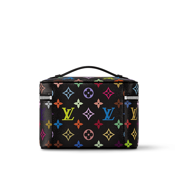 With its rounded boxy shape, top handle and double zipper closure, the Nice Mini toiletry bag is stylish and small. Made of canvas with a monogram coating, it is whimsically adorned with vivid rainbow hues that are reminiscent of the characteristic colour scheme of well-known Japanese artist Takashi Murakami. Essentials are arranged in an internal flat pocket, and a washable lining adds a useful touch to the design.