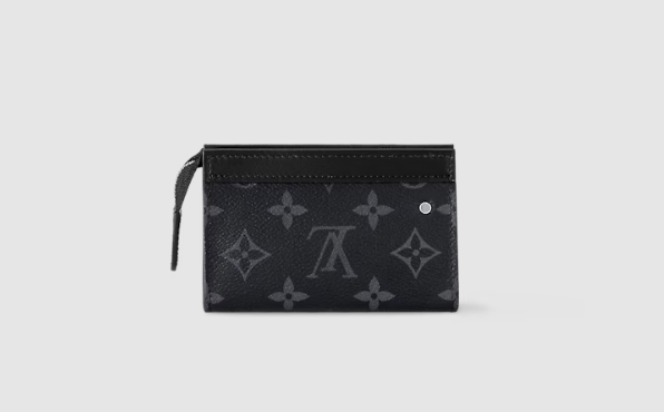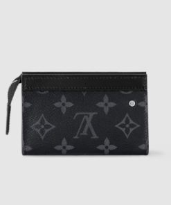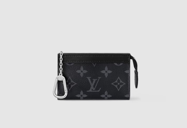 The Key Pouch Voyage is composed of cowhide-leather trim and Monogram Eclipse canvas. In addition to keys, it can also hold folded banknotes, coins, and cards thanks to the zip closure. The majority of Louis Vuitton bags include a D-ring that this pouch may be attached to.