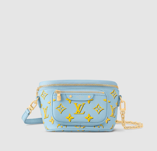 The Mini Bumbag is back for the Prefall 2024 collection, this time with a vibrant take on the Monogram design. The classic design is silkscreen-printed in a contrasting tone on soft lambskin, producing a striking impression. With its detachable, adjustable strap and detachable, gold-tone chain, this stylish, versatile piece offers a variety of styles and carry possibilities.