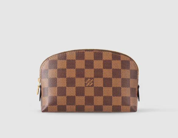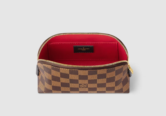This Damier canvas cosmetics pouch has a huge zipper that makes it easy to store all little items. It has a flat pocket that’s perfect for a mirror.