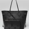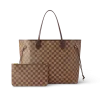 This handbag fuses timeless fashion in an easy-to-carry bag. The Louis Vuitton Neverfull is a tote bag with two thin straps and an open, reach-in design. In the center, it has an interior metal clasp that brings the sides togetherThis LV Neverfull comes in their legendary black Damier print with coated canvas