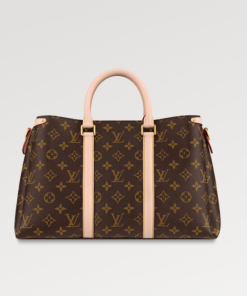 The Louis Vuitton Soufflot MM is manufactured with high-quality monogram-coated canvas and smooth cowhide leather used for trims, contributing to more luxury. The gold-color hardware for the bag provides the sleekest appearance with a unique and unpretentious cowhide-leather nametag.