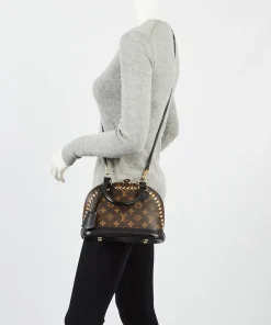 LOUIS VUITTON Studded Alma BB Monogram Macassar Canvas Brown Bag